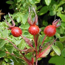 Deze roos groeit flink, tot wel 2 m hoogte, je kan de plant gemakkelijk langs een rekje laten groeien. Een halfbeschaduwde tot zonnige plaats is ideaal voor deze zeer vorstbestendige, bijna doornloze struik. De lichtroze bloemblaadjes zijn populair in rozenwater, cake, desserts etc. De vruchten (bottels) zijn ideaal voor jam of gedroogd voor thee. Snijd de vruchtjes open en verwijder de haartjes die onder de zaden zichtbaar zijn. De zaden zitten vol vitamine E!