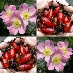 Dit is een van de gezondste rozen, want de vruchten bevatten het hoogste Vitamine-C gehalte van alle bottelrozen. Rozenbottels doen niet onder voor de vele ‘superfoods’, die menig bewuste eter het hart sneller doet kloppen! Naast vitamine C zit er ook vitamine A, B, E en K in rozenbottels. Deze Pillnitzer Vitamineroos 'Pi Ro 3' is ontstaan uit een kruising van Rosa dumalis met Rosa pendulina var salaevensis. De struiken hebben een flinke groeikracht op alle gronden en worden 1-2 meter groot, ze groeien breed uit en bevatten heel weinig stekels. De donkerrode bottels zijn 3x1,5 cm, donkerrood en hebben een vitamine-C gehalte van 1150 mg per 100 g vruchtgewicht. We moeten uiteraard het voorafgaande wonder niet vergeten: de talrijke bloemen (3-4 cm, enkelbloemig) zijn lichtroze en bloeien in juni. De bladeren hebben een opvallende gele herfstkleur.