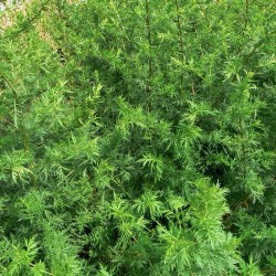 Het zaad, de gele bloemetjes en het varenachtige blad hebben een heerlijke, kamferachtige geur... dit maakt de plant al heel aantrekkelijk! Een beetje van de gedroogde plant door je kussen geeft een rustgevend effect. Maar voordat we gaan oogsten, eerst de plant zelf: deze groeit wel tot 2 meter hoog en is een prachtige éénjarige afscheiding voor een veranderlijke tuin. Al eeuwenlang is in China de geneeskrachtige werking bekend: koortsverlagend en bacteriedodend. Het Artemisinine-gen, dat in deze plant wordt gevonden blijkt veelbelovend voor de medicatie tegen malaria te zijn. Ook zijn er veelbelovende onderzoeken bekend met positieve uitslagen tegen kanker. We verwijzen naar externe bronnen op internet, gebruik op eigen verantwoordelijkheid. De blaadjes kunnen overigens ook als pittige bittermaker door salades.