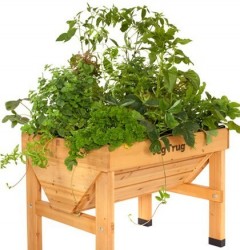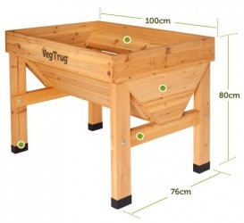 VegTrug (GroenteTrog) is een degelijke en fraaie houten bak op poten om op elke (lichte) plek groenten, kruiden of bloemen te laten groeien. Enkele opvallende eigenschappen: