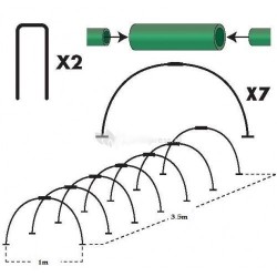 Hier maak je een tunneltje mee van 350x100 cm. Ideaal voor het vroeg of laat zaaien in de tuin, afharden van binnen gezaaide plantjes en in de zomer telen van warmteminners zoals postelein en meloenen. Naast de grondpinnen zijn enkele stenen of een aarden walletje wel aan te bevelen om wegwaaien te voorkomen.