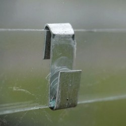 De glasclips 'S' van aluminium plaats je tussen twee ramen.
