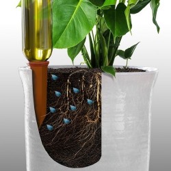 Het systeem Op de terracotta stekers plaats je een lege wijnfles, die gevuld is met water. Wanneer de grond rondom de steker droger wordt zal deze langzaam water doorlaten en zo de grond en daarmee de wortels weer bevochtigen. Je planten genieten steeds van de juiste hoeveelheid water en zullen je belonen met optimale groei. Gebruik binnen en buiten Dit systeem gebruik je bij kamerplanten, bloembakken buiten of in de vollegrond van je tuin. Vakantie Als je eenmaal wat ervaring hebt met dit systeem, dan weet je hoe vaak je de fles moet bijvullen en kan je gemakkelijk in die periode op vakantie. Voor langere tijd hoeven buren of familie alleen de flessen aan te vullen! Leveringsmaandenhet gehele jaar