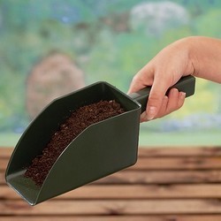 Schepjes zijn vaak niet zo handig bij het opscheppen van aarde. Dit model met zijn hoge randen is daar speciaal voor ontwikkeld en niet om plantgaten te maken. Groen kunststof met extra nylon voor lange houdbaarheid. We leveren de hoekige of de ronde vorm.