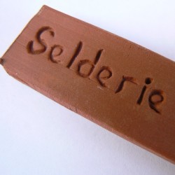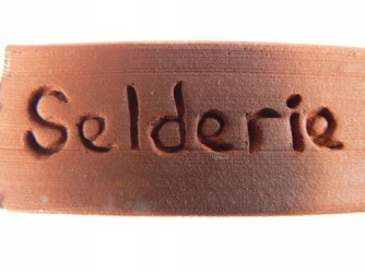 Roodstenen stekers met de naam van het kruid ingekerfd. Door heet te bakken zijn de stekers zeer vorst- en slijtbestendig. Afmeting: lxbxd: 120x19x7mm.