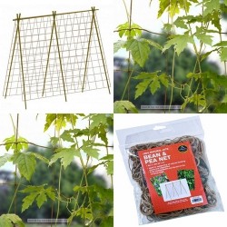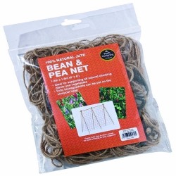 Puur natuur... Dit klimnet is geknoopt van jutetouw en ideaal als steun voor klimmende erwten, bonen, Lathyrus, Ipomoea etc. Het net gaat 1-2 seizoenen mee en verteert op de composthoop. Het materiaal is bruin jute, met op de hoekpunten groen jute als handig hulpje.