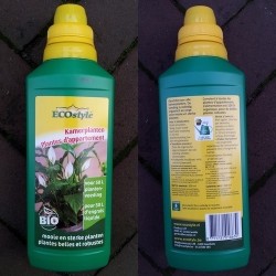 Planten in potten moeten al hun voedingsstoffen uit de potgrond halen. Regelmatig voeding geven is belangrijk om te voorkomen dat de groei stagneert of de grond uitgeput raakt. Deze organische mest bouwt de humus in de grond en de voeding op. Voeding N2,7 + K4,8 +sporenelementen