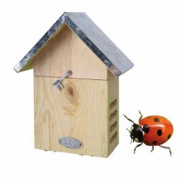 Lieveheersbeestjes zijn naast een genot om naar te kijken zeer nuttig gasten in je tuin. Een volwassen lieveheersbeestje eet wel 100 bladluizen per dag. Een goede reden dus om het lieveheersbeestje het naar de zin te maken in je tuin. Het huisje is zo ontworpen dat lieveheersbeestjes hier gemakkelijk toegang tot hebben. Tevens worden veel concurrenten en roofdiertjes buiten gehouden. Lieveheersbeestjes overwinteren vaak in een groep bij elkaar. Om het lieveheersbeestjes helemaal naar de zin te maken is het raadzaam enkele losse bladeren of een rolletje golfkarton in het huisje te stoppen. Ook ingevroren larven kunt u hierin herbergen voor biologische bestrijding van bladluizen. Afmeting: 17,4x10,1x22,8 cm