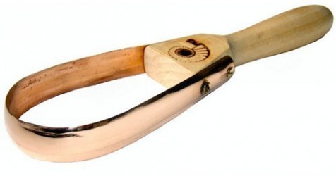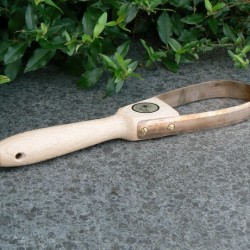 Moeiteloos onkruid wieden in gebukte houding of op de knieën. Het mes snijdt aan twee kanten gemakkelijk onder het onkruid door en maakt gelijktijdig de grond los. Werkt zoals de Hydra maar zonder pendel. Brons, de steel is van beukenhout. Lengte: 26 cm, breedte: 6,5 cm, hoogte: 2 cm, gewicht: 120 g.