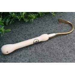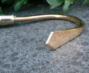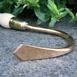 Bijzonder praktisch kleingereedschap om op kleine schaal de grond los te maken en om wortelonkruiden te verwijderen. Brons, steel van beukenhout. Lengte: 36 cm, breedte: 2 cm, hoogte: 11 cm, gewicht: 210 g.