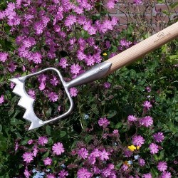 Beugelschoffel Hollands model, bekender onder de naam Dutch Hoe. Zeer stevig en extra scherp door het tandvormig geslepen blad. Schoffelt het onkruid los en tevens de grond, een bewerking die je niet vaak genoeg kan doen! De duw- en trekbeweging geven beide het gewenste effect. Werkbreedte 12,5 cm. De totale lengte is 160 cm, voorzien van een originele schoffelsteel met hilt.
