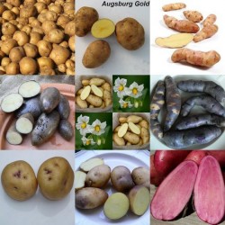 Aeggeblomme (405980), Augsburg Gold (405990), Bamberger Hörnchen (407990), Bananenkartoffel (407995), Blue Christi (408850), Heideniere (408260), Lila Finger (408860), Paarsput (405350), Poulsen July (408530), Rote Emma (406510)