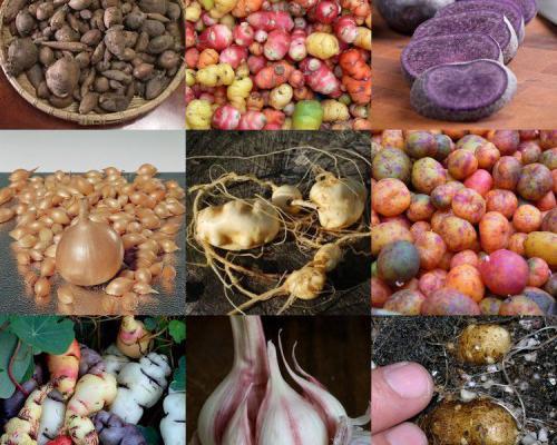 Bekende en onbekende soorten: Ulluco, Oca, Plantuitjes, Sjalotten, Knoflook, Madeira Vine, Limoenklaver, Chinese Yam, Tajerblad… allemaal gemakkelijk te telen bol- en knolgroenten. Rond deze tijd worden ze door ons opgepot om de verkooptijd te verlengen. Voor die tijd geef ik een rondje voordeel weg: een mooi en gevarieerd pakket (ik stop er ook wat bijzondere aardappeltjes bij) ter waarde van € 40,00 bied