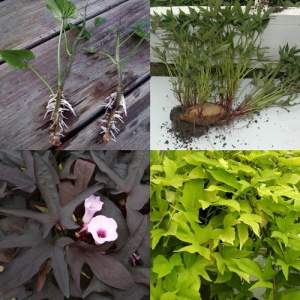 Zoete Aardappelplanten zijn niet aan te slepen dit jaar. Je kan ze tot september kopen bij ons, want jonge planten laat je overwinteren als kamerplant. De hele winter stekjes snijden en je hebt een goedkope start in 2015. Klik hier voor het sortiment Plant ze ook gerust in grote potten en wat vind je van onze zoete aardappelen met gekleurd