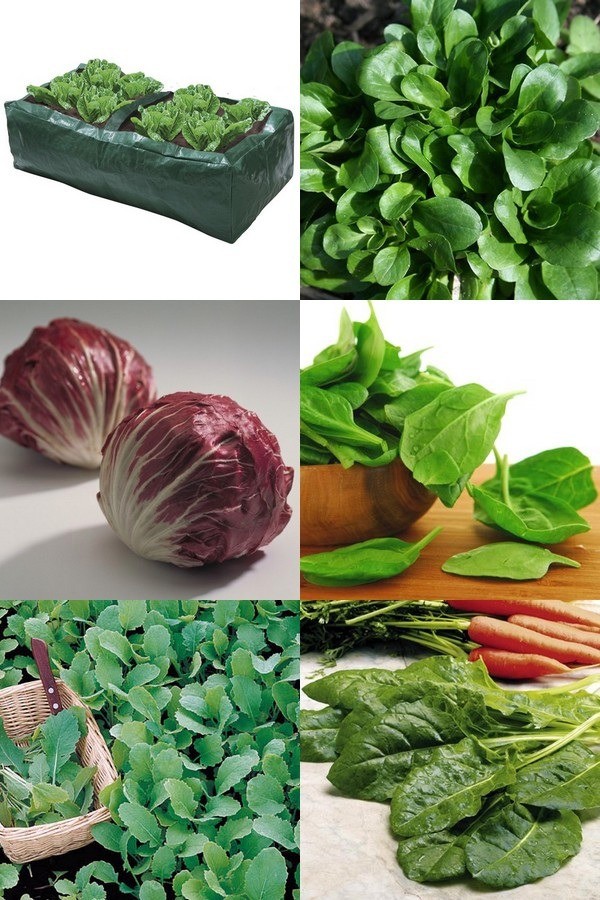 1 Rauwkost-Groeizak 1 pakje Veldsla 100 g Spinazie (ook lekker als rauwkost!) 1 pakje Raapsteeltjes 1 pakje Cichorei of Snij-andijvie 1 pakje Snijbiet (voor jonge oogst)