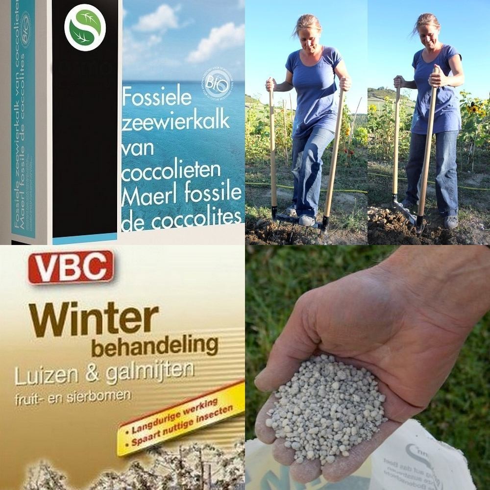 Als het niet te nat is, dan kan je over je grond lopen om te bekalken en te bemesten. Omdat iedereen zijn eigen methode van bemesten heeft, kan je bij ons een heel scala uitzoeken. Kijk maar eens op https://www.vreeken.nl/hulp-bij-tuinieren/mest/p1-50. Fossiele Zeewierkalk strooi je het liefst in de winter en is een mooie, zachte kalk, die we voordelig kunnen aanbieden: