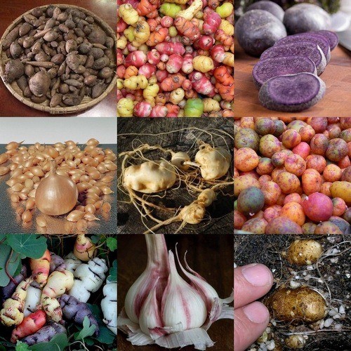 Plant je nu knoflook, uitjes of sjalotten dan kan je in de nazomer een lekker pittig en vers product verwachten. We maken het opruimingspakket compleet met bijvoorbeeld Yakon, Tajerblad, Oca, Ulluco, Mashua, een bijzonder aardappeltje en allerhande andere boeiende bolletjes en knolletjes.