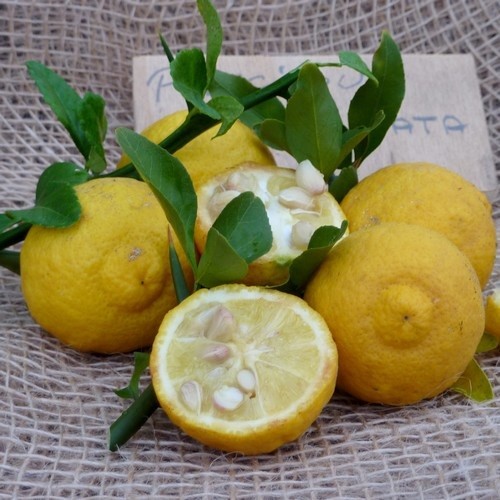(Poncirus trifoliata) De enige Citrusachtige, die in ons klimaat goed overwintert! De stekelige struikjes verliezen ‘s winters hun blad en kunnen tot -20°C verdragen. Na de witte (meestal geurige) bloei ontstaan de vrij kleine vruchten die van groen naar lichtoranje kleuren: erg zuur! De schil is heerlijk in confituren en het sap kan heel goed in kook- en bakgerechten. Een aanrader, ook voor bonsai! Dit soort wordt veel gebruikt als onderstam voor andere Citrusachtigen. Ook