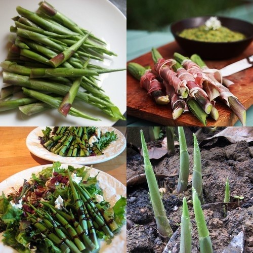 (Eetbare Hosta) In Japan is het eten van Hosta’s al lang gewoonte, hoog tijd dat we daar mee gaan experimenteren, vonden we! Jonge bladeren worden in kokend water gelegd en kort gekookt, net als sugar snaps, na de kook en eerste verkleuring direct koelen met koud water: heerlijk knapperig en zacht als asperge’s met een licht snel vervagend bittertje. Vóór de bladontwikkeling kunnen de scheuten zoals asperge worden gebleekt onder een bleekpot. De bloemen zijn in