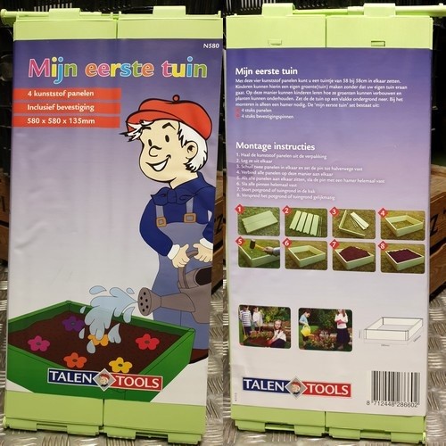 Voor kinderen is het zelf kweken van groenten en/of bloemen een leuk avontuur. Om overzichtelijk te beginnen is dit verhoogde plantenbedje in vrolijk groene kleur een goed begin. De panelen maken samen een tuintje van 58x58 cm em 13.5 cm hoog. Zet dit tuintje niet op de tegels, maar gewoon in een bestaande tuin en vul het bedje met tuinaarde of potgrond. Dit is helemaal het eigen domein van elk kind dat groene vingers mag krijgen… Je bestelt ze hier: