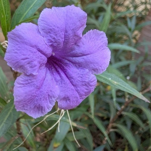 We kwamen ‘s nachts aan en ontbeten in een fraaie binnentuin, hoewel mijn handen jeukten om wat onderhoud te plegen en ideetjes te geven... Omzoomd door enorme Bougainvillea’s in felroze, wit en zalmkleur. Verder een Banaan en een Mangoboom, helaas zonder vruchten. Wat meteen opviel was deze hemelsblauwe bloem die ik me nog herinnerde van mijn allereerste tropische tocht door Sulawesi. Je ziet ze overal, een ijverige bloeier, ongeveer 60 cm hoog: de Mexicaanse Petunia (Ruellia
