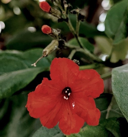 Toen we begonnen aan een wandelingetje richting de zee, kwamen we deze bloeiende straatboom tegen. Aangeplant uiteraard, heel populair op dit eiland, de boom bloeit dan ook het hele jaar door, wat een weelde...! De naam is Sebestenboom (Cordia sebestena) en komt oorspronkelijk uit de landen in en rond Midden-Amerika.