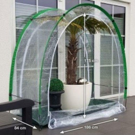 Deze handige tent heeft veel mogelijkheden: vervroegen en afharden in het voorjaar, tropisch verwennen in de zomer, groei verlengen in de herfst en beschermen in de winter. De tent heeft als afmeting 186 cm breed, 175 cm hoog en 84 cm diep. Met een stevige rits om te kunnen “luchten” of extra goed af te sluiten.