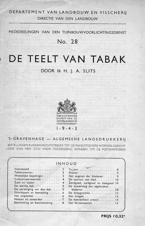 Wil je meer leren over de teelt van tabak, of ben je gewoon op zoek naar wat handige informatie omdat je het nu voor het eerst gaat proberen? Wij hebben ook een historisch teeltboekje te koop! Hierin staat alles wat je moet weten over de teelt, het drogen en het bewerken van (rook)tabak.