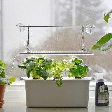 Harvy 3 en Harvy 6 bestaan uit een wit kunststof reservoir met deksel waar de gaten zijn uitgespaard voor 3 of 6 planten. Inclusief 6 zaaipluggen van composteerbare kokosvezel + turf + beetje voeding. Inbegrepen zijn: plantvoeding en zaden voor 3 basilicum-soorten en 3 sla-soorten.