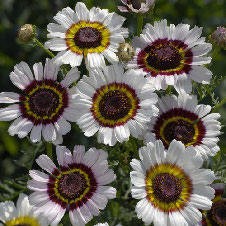 Ganzebloemen staan bekend om hun gemakkelijke teelt en vrolijke kleuren. Het malse, frisse blad maakt het plaatje helemaal compleet. Deze variëteit heeft een heldere witte kleur, met rondom het donkere hart een gele en rode ring. Mooi is eigenlijk een understatement... Deze soort past, door de niet te strakke groei, perfect in een natuurlijke tuin. Als snijbloem is het vaasleven ook nog eens bijzonder lang! Hoogte: 50-70 cm.