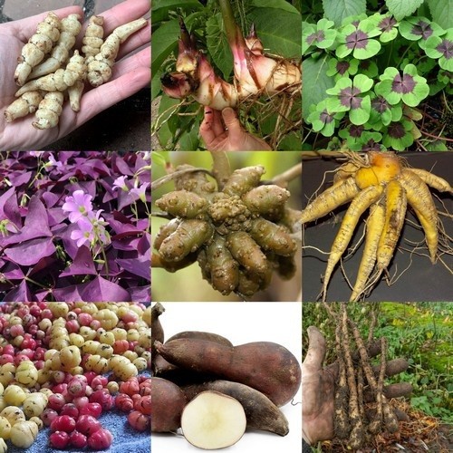 * Er zijn ook andere eetbare knollen, die erg voedzaam zijn! Ik noem ze niet allemaal, maar je kan de (nu leverbare) soorten hier verkennen. Binnenkort krijgen we zelfs de lang afwezige Ulluco’s weer, ik kwam in contact met een meedenkende Deense kweker, die ze levert. Eind april krijgen we jonge plantjes van de Zoete Aardappel, maar liefst 20 toprassen, daar kan je ook naar uitkijken!