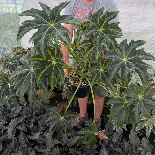 Tot slot (tèteretèèè) een echte primeur: een prachtige Bladbegonia. Onze kweker heeft aan ons de eer gegeven om deze als eerste aan te bieden. Hij weet dat we gek zijn op planten en ik was meteen onder de indruk toen ik deze beauty zag! De voorlopige naam is Begonia heracleifolia ‘Draco’. De plant kan allereerst natuurlijk in een flinke pot in de kamer of op het terras. Als je een tuin hebt met humusrijke grond (lekker potgrond erdoor mengen) en een
