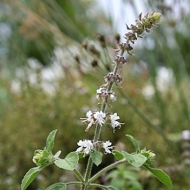 Zo‘n geurige basilicum als deze grote soort (tot 120cm) kom je zelden tegen! De plant maakt grote, fluweelzachte bladeren en volle, witte bloemtrossen (die overigens ook eetbaar zijn!). Idee: zet de plant in een flinke pot en laat deze in een kas of koele kamer overwinteren. In de loop der jaren ontstaat een houtig stammetje.