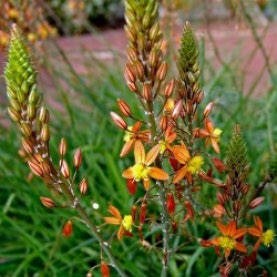 Een compacte krachtpatser (40–60 cm) met sierlijke, stervormige oranje bloemetjes en zonnige lokkwastjes. Ze bloeien lang en staan net boven het smalle, lancetvormige blad. Zet 'm in de zon op een goed drainerende plek en knip uitgebloeide bloemen weg voor extra bloei. In een flinke pot kun je ‘m makkelijk bij vorst naar binnen verhuizen – schuur of kas is perfect. De naam zegt het al: het sap van deze plant is een wondermiddel bij insectenbeten, blaren, koortslip,