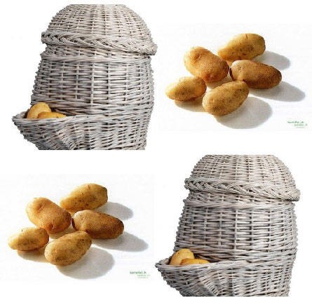 - Een stijlvolle grijze aardappelmand van wilgentenen – perfect om je geoogste aardappels donker, droog en luchtig te bewaren.
