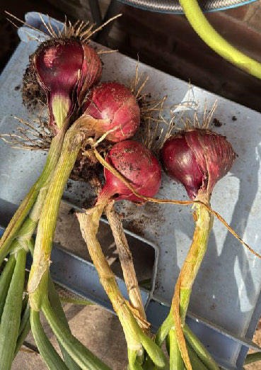 Daarnaast heb ik vorige week mijn uien en knoflook uit de grond gehaald, en ik ben écht trots op mijn rode uien. Normaal hebben we hier nooit echt geluk met uien in de tuin, maar dit keer is het gewoon gelukt! Nu laat ik ze even drogen, en binnenkort ga ik er lekker van genieten.