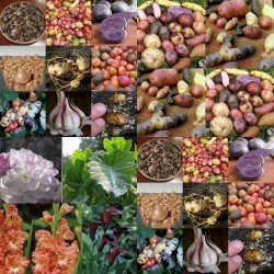 - Ik stop een aantal bloembollen, knollen of wortelstokken in het pakket – veel hiervan zullen nog een mooi resultaat geven.