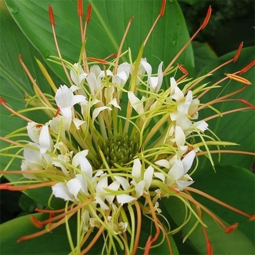 - Bolvormige Siergember Een fraaie Siergember met bolvormige bloemtrossen, witte bloemen en lange gele stampers met nog langere oranje meeldraden, erg sierlijk! De bloemen geuren heerlijk en pronken op 100-150 cm hoogte. Je kan vanaf het tweede jaar op de prachtige, geurige bloei rekenen. De knollen heb ik net opgepot, maar ze beginnen al lekker te groeien... Bestel een plant hier voor slechts € 7,50