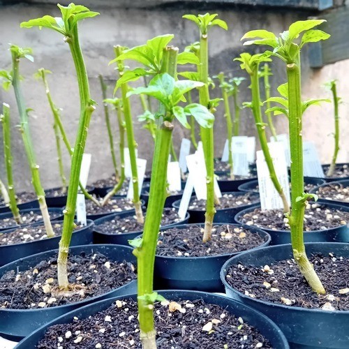 In februari-maart kun je de jonge plant in een pot zetten (liggend of deels ingegraven zodat de uitloper net onder de grond zit). Geef water zodra de aarde droog is, en laat ‘m bij mooi weer buiten wennen. Zodra de vorst voorbij is (meestal in mei), mag hij de volle grond in.