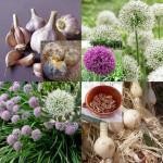 Het opruimingspakket bevat een gevarieerde selectie van knoflook en bijzondere looksoorten, zoals slangenlook, Russische look, muisjeslook en Perzische sjalotten.