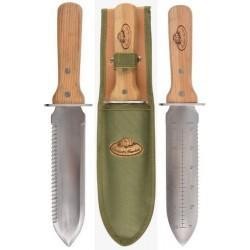 Dit veelzijdige tuingereedschap combineert de functies van mes, zaag en graafwerktuig in één. Het is ideaal voor het verplanten van zaailingen en ook verrassend handig bij het poten van bloembollen, dankzij de centimeter- en inchmarkeringen op het lemmet waarmee je eenvoudig de juiste pootdiepte meet. Het Hori Hori-mes wordt geleverd met een stevige schede, zodat je het gemakkelijk aan je riem kunt bevestigen en altijd bij de hand hebt.