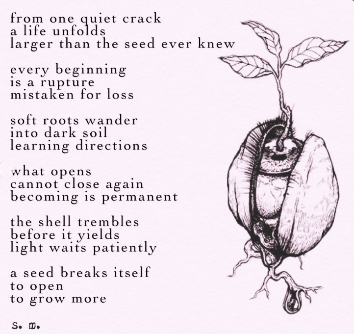 Vaak begin ik met de bijzondere eigenschap van zaad: hoe het ogenschijnlijk stil en levenloos kan blijven, om onder de juiste omstandigheden tot leven te komen. Het is een klein wonder dat zich telkens opnieuw voltrekt.