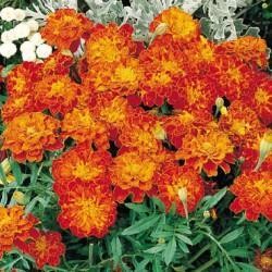 Kastanjebruin met een opvallend oranje randje en centrum. Deze compacte afrikaantje vormt stevige, rijk vertakte planten die gedurende de hele zomer blijven bloeien. De bloemen hebben een warme, diepe kleurcombinatie die zorgt voor een krachtig contrast in de border, pot of balkonbak. Door de lange bloeiperiode is ‘Carmen’ een betrouwbare kleurgever in de tuin.