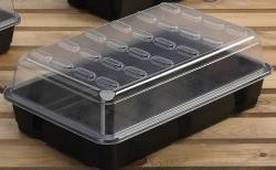 Eenvoudig maar zeer stevig zaaibakje met een halfhoge, voordelige transparante kap. De kap heeft geen ventilatieopeningen, maar is zo gevormd dat condens grotendeels langs de randen wegloopt.