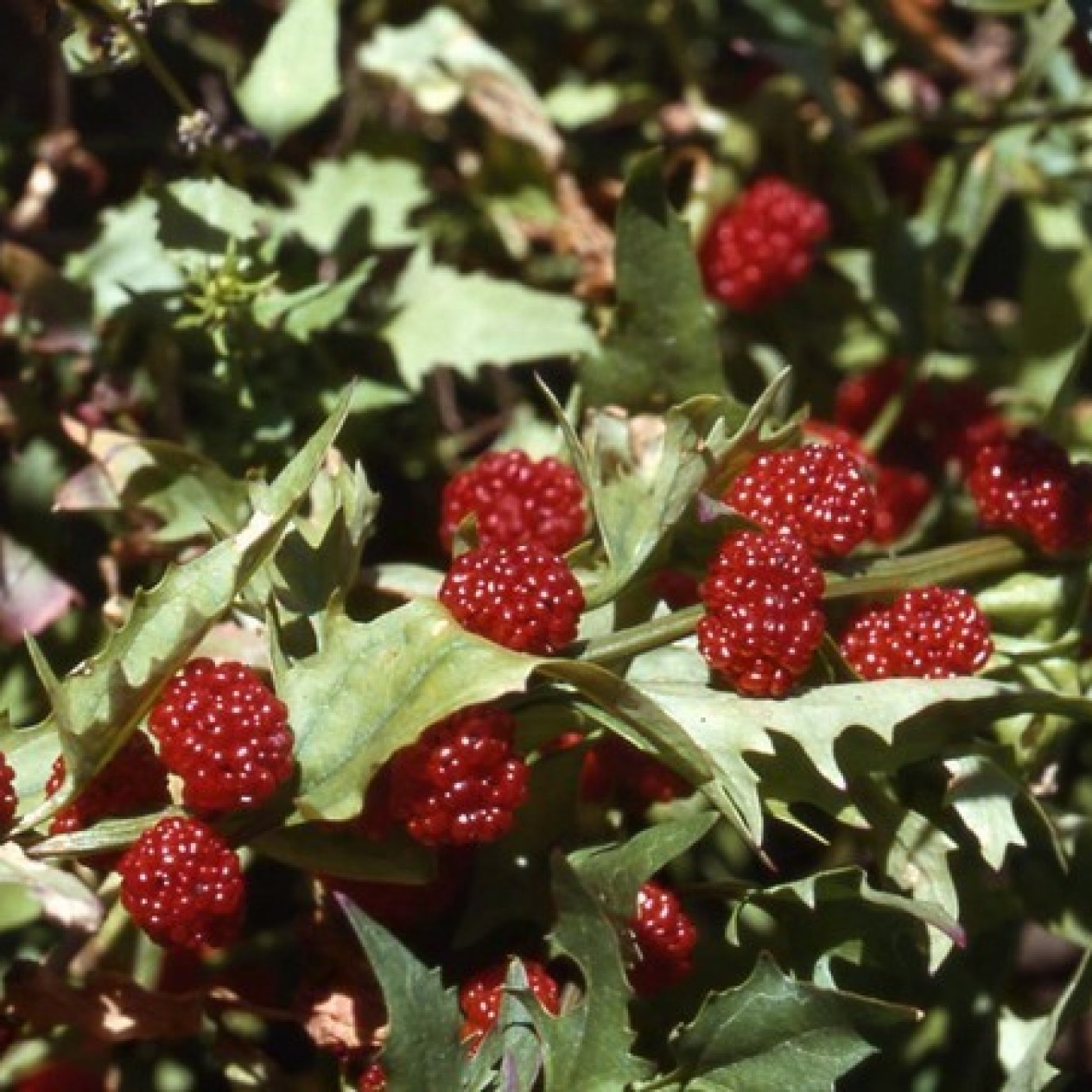 Vergeten en toch zeer decoratieve, eenjarige groente, terug van weggeweest. Het blad is na 6 - 7 weken als spinazie oogstbaar. Groeit de plant door, dan ontstaan na 1-2 maanden de als aardbeitjes ogende vruchtjes! Het verschil met aardbeispinazie (C. foliosum) is de plaatsing van de vruchtjes, die geconcentreerd aan het einde van de stengel is, vooraf gegaan door wat forser blad dan de aardbeispinazie. Decoratief in gerechten, maar ook als sierplant een verrassing. Gebruik de vruchtjes om sappen te kleuren (in de blender) of als decoratie door salade. Van (sec) alleen de vruchtjes heb je weinig plezier, ze smaken tamelijk neutraal.